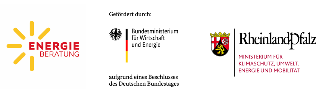Dank der Förderung durch das vom Bundesministerium für Wirtschaft und Energie sowie durch das rheinland-pfälzische Ministerium für Klimaschutz, Umwelt, Energie und Mobilität sind die Energieberatung in unseren Beratungsstellen sowie die dort ausgehändigten Informationsmaterialien für Sie kostenlos.